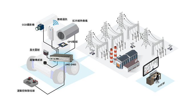 | 機(jī)器自動(dòng)化高效能UNO-2000系列嵌入式計(jì)算機(jī)讓變電站巡檢機(jī)器人之功能得以淋漓盡致發(fā)揮項(xiàng)目簡介:一般而言,變電站巡檢機(jī)器人之運(yùn)作流程是:先透過無線網(wǎng)絡(luò)接收監(jiān)控中心的巡檢指令,并依照系統(tǒng)所指定的路徑行進(jìn);沿路則得透過高解析攝影機(jī)拍照、以及透過紅外線系統(tǒng)測溫,并立即將數(shù)據(jù)傳送給監(jiān)控中心;巡檢過程中若發(fā)現(xiàn)異常,還需自動(dòng)發(fā)出警示以通知相關(guān)人員;完成巡檢后則必須回到充電室自動(dòng)充電或等待下一次巡檢任務(wù)。而要達(dá)到這樣的巡檢要求,機(jī)器人內(nèi)部必須囊括相當(dāng)多的硬件裝置,因此若沒有強(qiáng)而有力的嵌入式計(jì)算機(jī)作為控制核心,機(jī)器人是無法扮演好「電力巡檢員」的角色。 研華的UNO-2483G與UNO-2272G高效能無風(fēng)扇嵌入式計(jì)算機(jī)既提供了足夠的性能來處理大量且復(fù)雜的運(yùn)算工作;采強(qiáng)固與緊湊設(shè)計(jì)的特色則能適應(yīng)惡劣的戶外環(huán)境與安裝空間有限的應(yīng)用;支持多種I/O接口與iDoor技術(shù)不僅能連接各式各樣硬件裝置、亦提供了彈性擴(kuò)充的靈活度;再加上研華專業(yè)的技術(shù)團(tuán)隊(duì)于機(jī)器人開發(fā)期間提供的專業(yè)協(xié)助,都讓系統(tǒng)整合廠商能早日完成項(xiàng)目開發(fā),并順利將機(jī)器人導(dǎo)入變電站提供巡檢服務(wù)。 系統(tǒng)需求:而根據(jù)變電站內(nèi)不同區(qū)域的應(yīng)用需求,這家系統(tǒng)整合廠商目前正在設(shè)計(jì)的是標(biāo)準(zhǔn)型與簡易型的變電站巡檢機(jī)器人。兩款機(jī)器人除了外型尺寸與功能略有不同之外,其所需的嵌入式計(jì)算機(jī)必須符合以下條件: